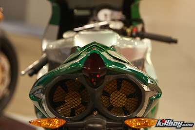 The radiator is horizontally mounted in the rear, the fans pull air through.  Keeps the front narrow!